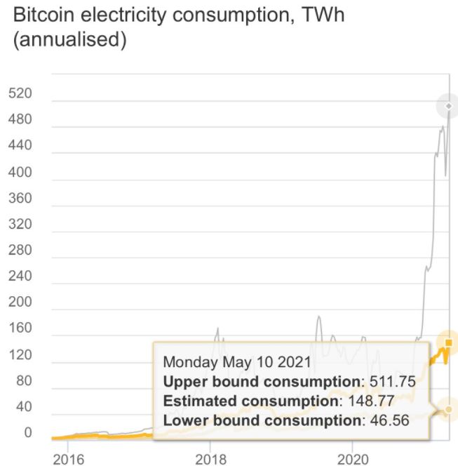 이유로는 비트코인(BTC)을 채굴하기 위해 들어가는 석탄을 비롯한 화석연료의 사용이 증가하는데 크게 우려를 하고 있다"는 이유를 들었었는데..
