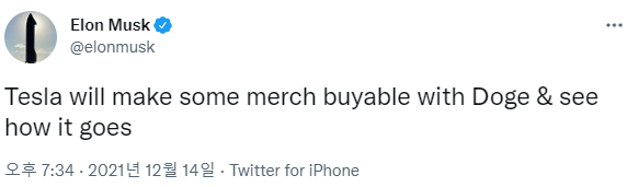 일론 머스크 테슬라 최고 경영자(CEO)가 테슬라가 판매하는 제품을 살 때 도지코인(Doge)으로 결제할 수 있도록 하겠다고 밝힌 것이다.