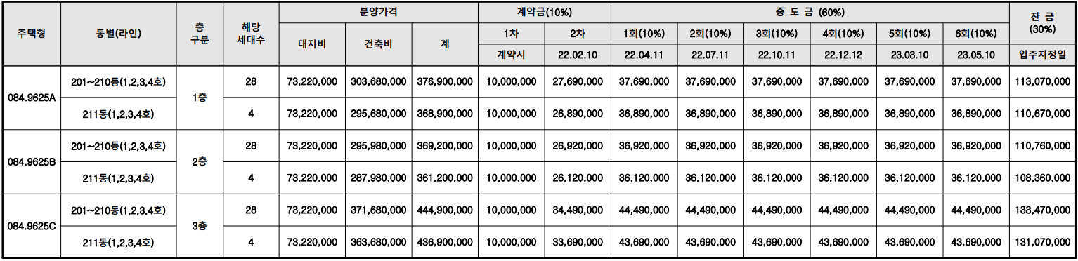 ◈ 분양가(공급금액 및 납부일정)