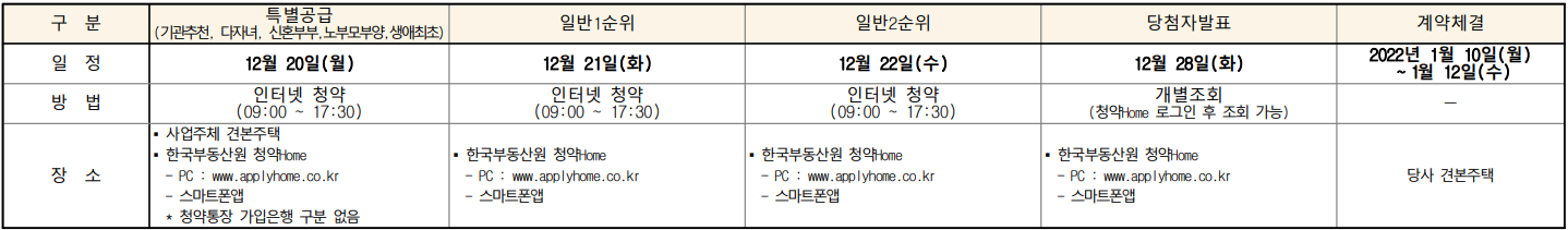 특별공급(기관추천, 다자녀, 신혼부부, 노부모부양, 생애최초) : 2021년 12월 20일 월요일