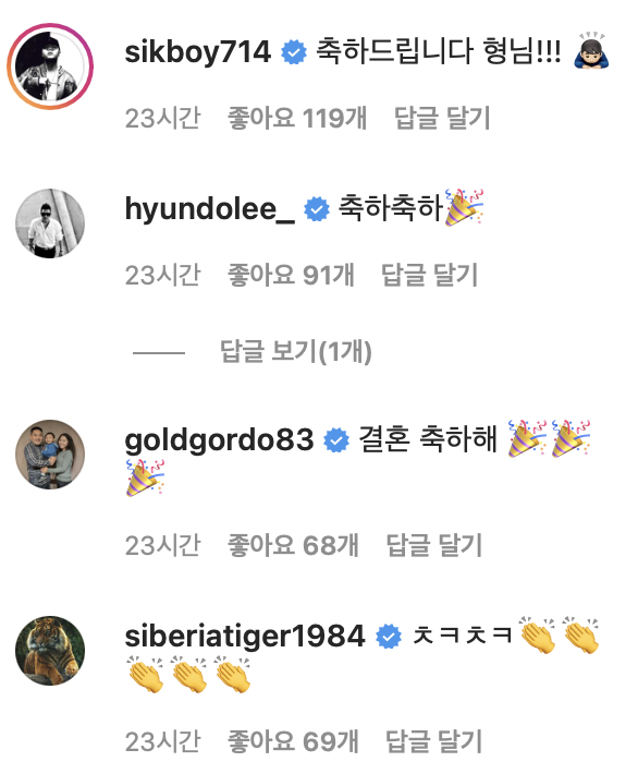 이를 본 래퍼 동료들인 코드쿤스트, 슬리피, 이현도, 타이거JK 등 다양한 동료들이 뜨거운 축하를 보내주며 기쁨을 함께 나누고 있는 모습도 확인됩니다.