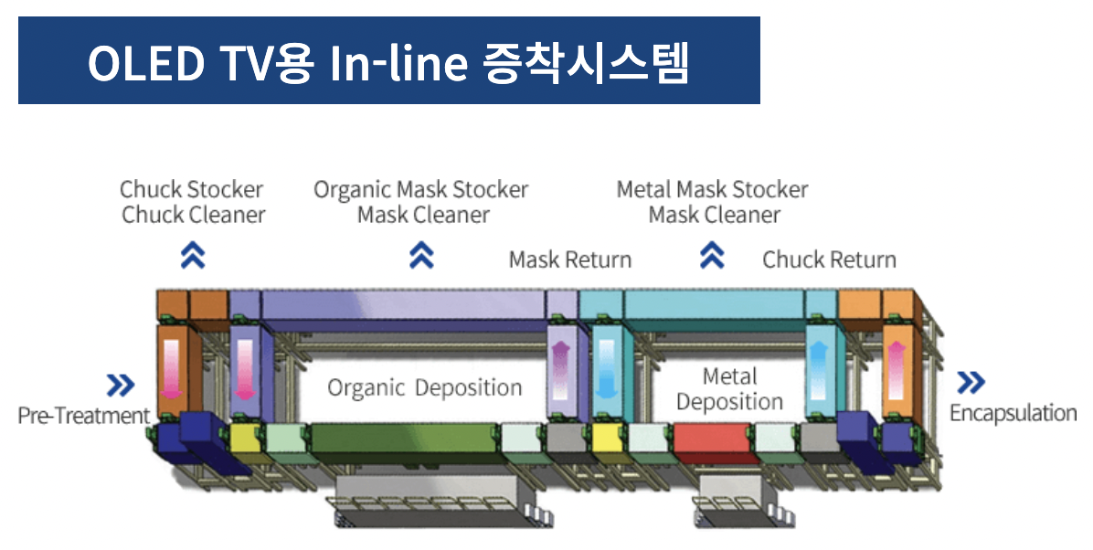 현재 8세대 이상 TV용 대형 패널 생산에 사용되는 증착기, 증착원(증발원), 부대장비를 포함하는 증착시스템과 6세대 이하 중소형 패널 생산에 사용되는 증발원과 5세대 조명장비 등을 주요 제품으로 판매하고 있으며 높은 품질과 우수한 경쟁력을 가지고 있다.