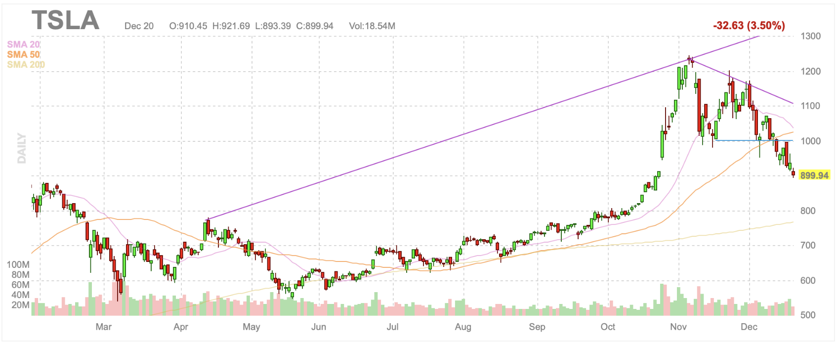 그로 인해 계속해서 하락하고 있는 테슬라..