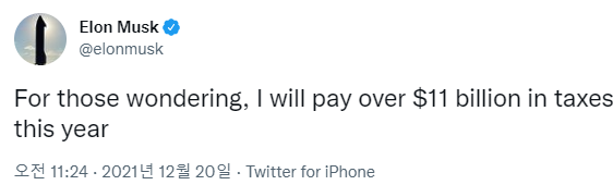 무튼.. 이로 인해 일론머스크가 세금을 내게 됐는데..