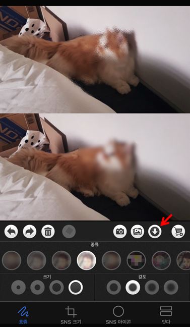 이제 원하시는 스타일로 모자이크 하셨으면 아래로 향한 화살표를 클릭하시고 저장해주세요