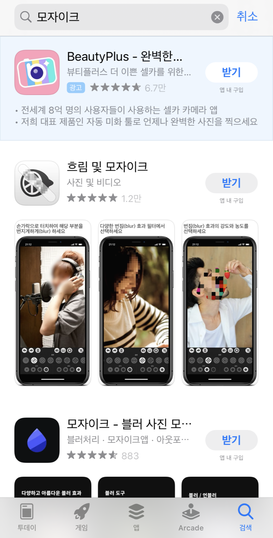 바로 어제 발견한 "흐림 및 모자이크"어플을 소개합니다.
