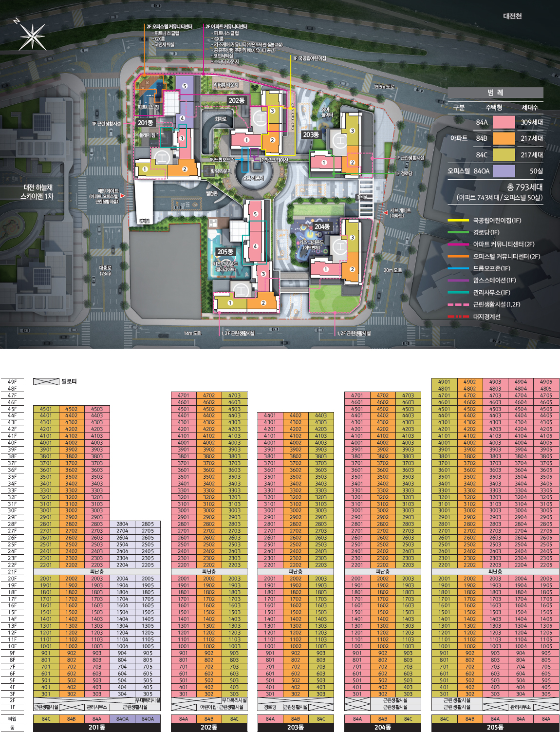 ◈ 대전 하늘채 스카이앤 2차 아파트 단지 및 동·호수 배치도