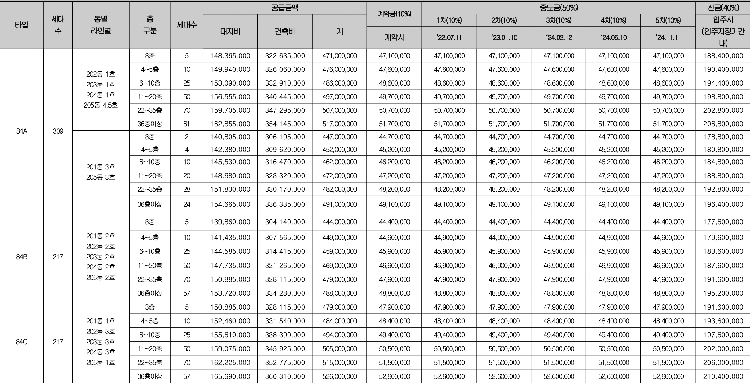 공급규모 : 아파트 지하 5층 ~ 지상 49층, 5개 동 총 743세대
