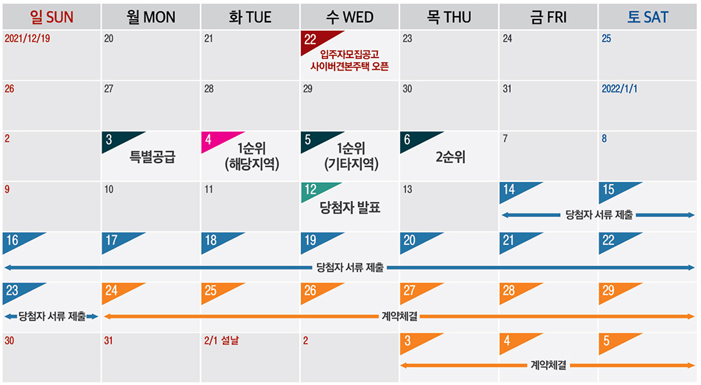 특별공급(기관추천, 다자녀, 신혼부부, 노부모부양, 생애최초) : 2022년 01월 03일 월요일