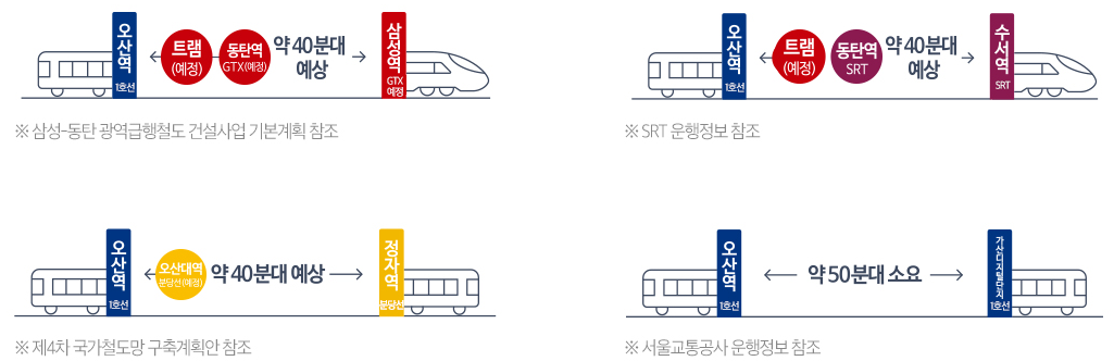 - 오산역(1호선), 오산IC(경부고속도로) 등
