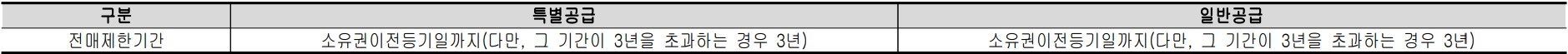 전매제한 : 소유권이전등기일(3년 초과시 3년 까지)