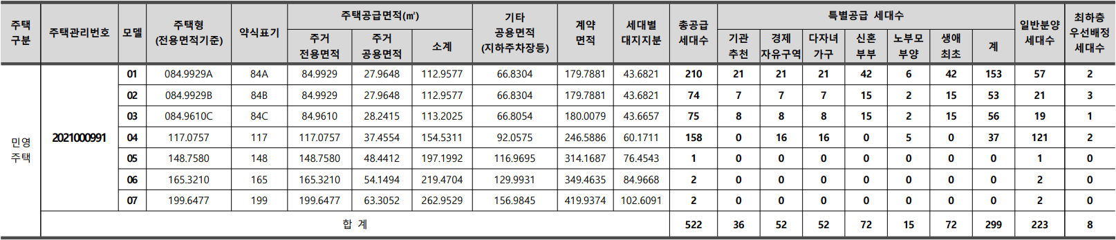 [특별공급 299세대(일반[기관추천] 36세대, 경제자유구역 52세대, 다자녀가구 52세대, 신혼부부 72세대, 노부모부양 15세대 생애최초 72세대 포함)] 및 부대복리시설