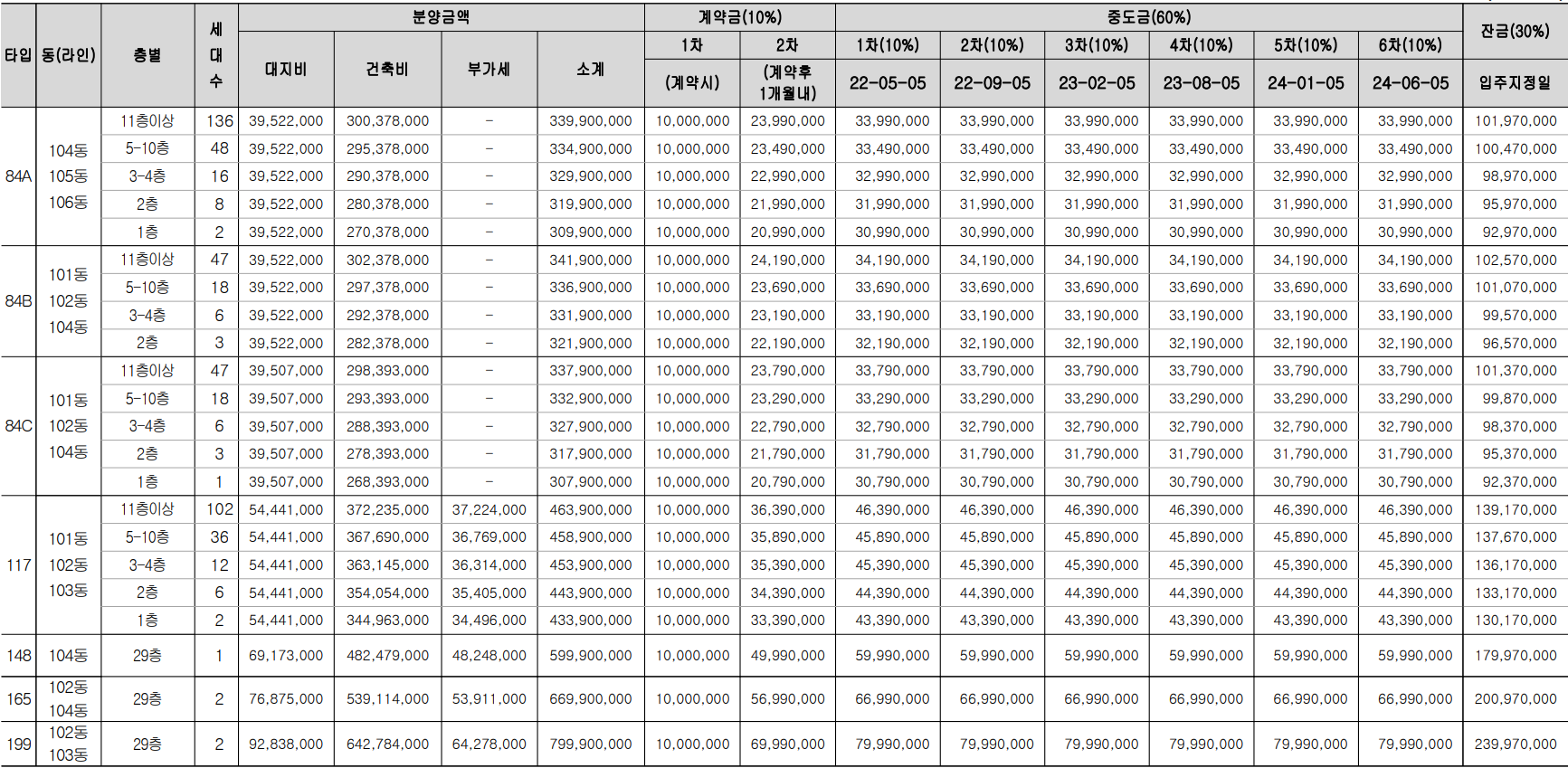 ◈ 분양가(공급금액 및 납부일정)