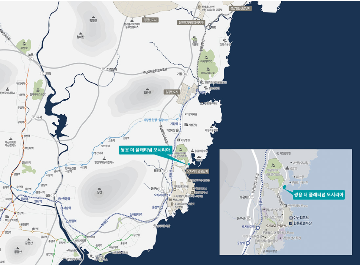 - 기장해안로, 해운대IC, 동부산IC, 동해선 오시리아역 등