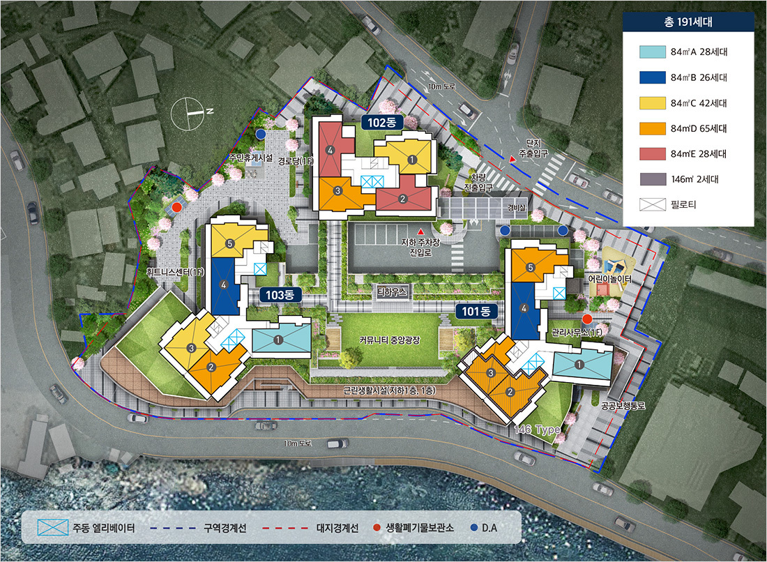 공급규모 : 아파트 지하 3층, 지상 15층 3개동 총 191세대 중 일반공급 105세대