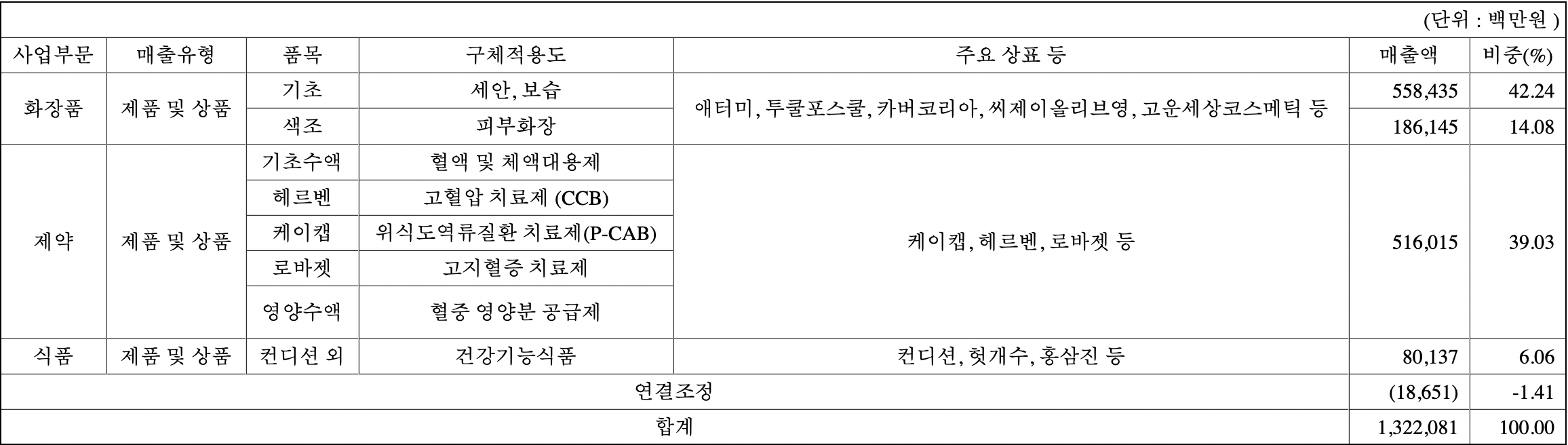 전문의약품 사업 부문