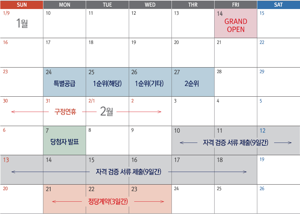 특별공급(기관추천, 다자녀, 신혼부부, 노부모부양, 생애최초) : 2022년 01월 24일 월요일