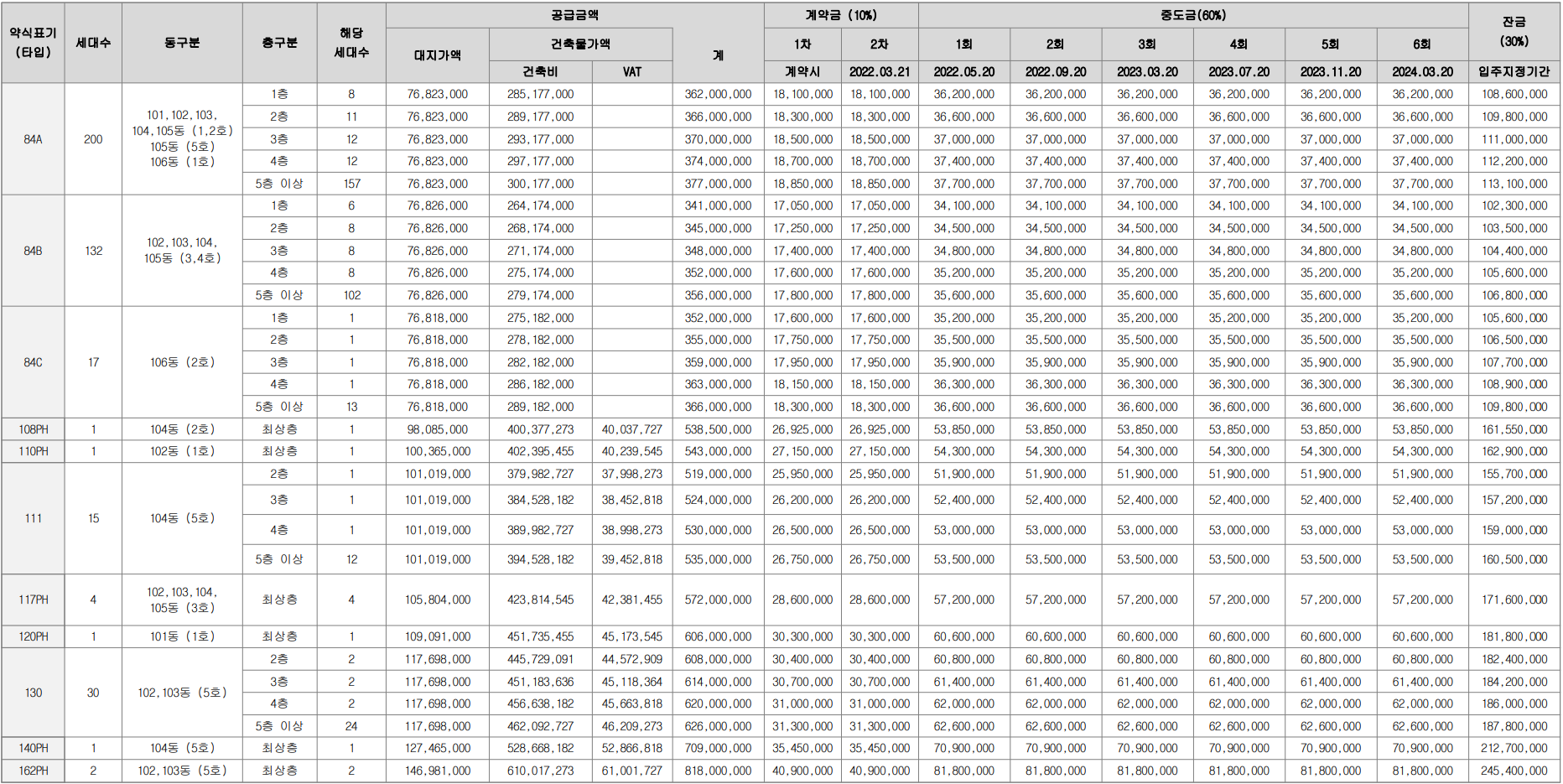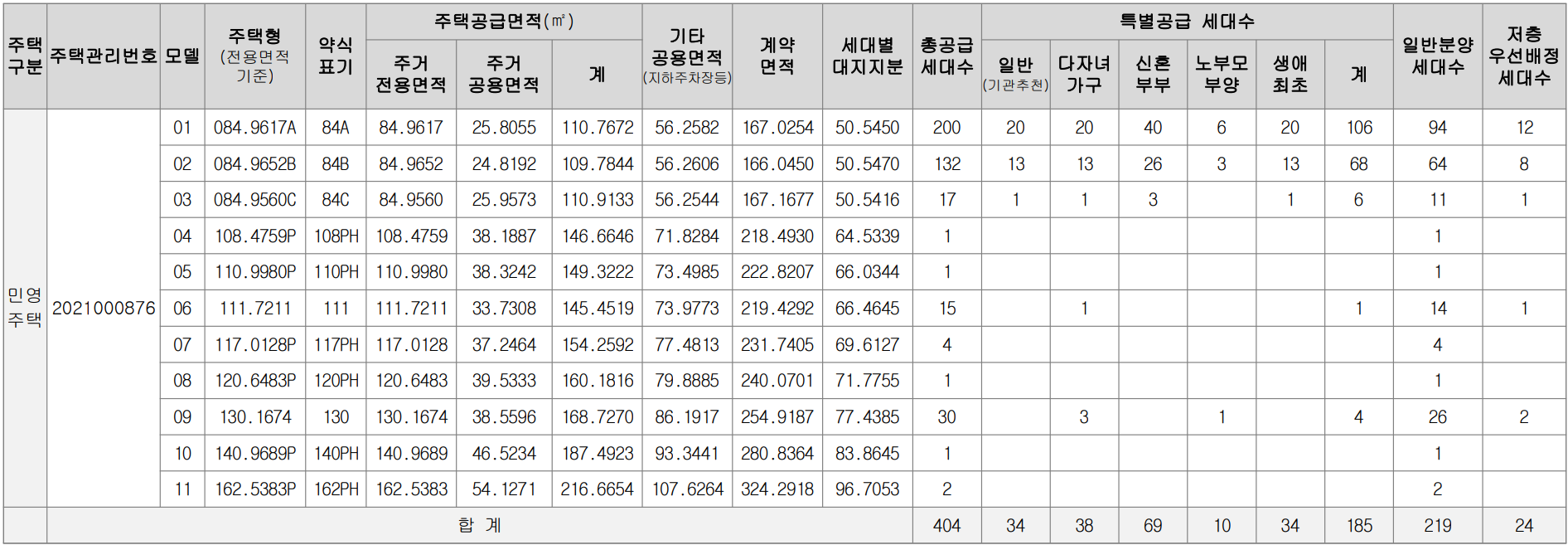 공급규모 : 아파트 지하 2층, 지상 16~18층 6개동 총 404세대 중 일반분양 404세대