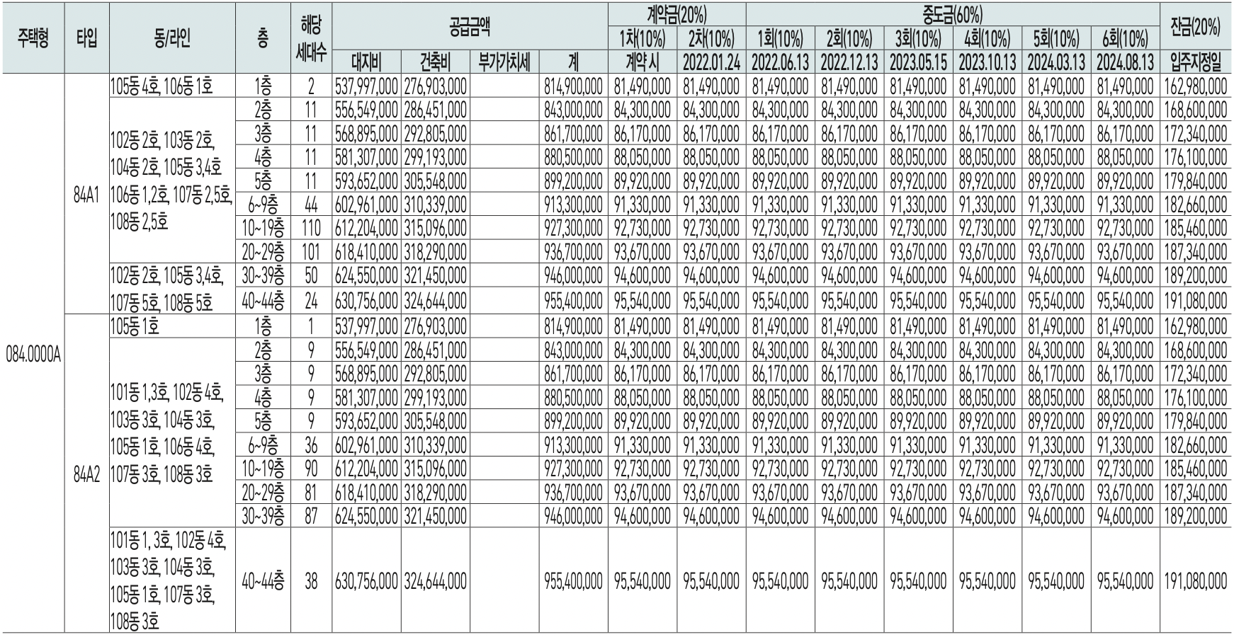 ◈ 분양가(공급금액 및 납부일정)