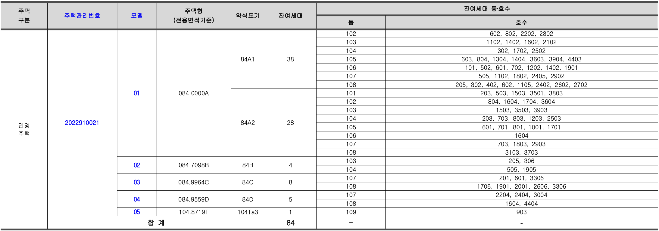 공급타입 : 84A1 / 84A2 / 84B / 84C / 84D