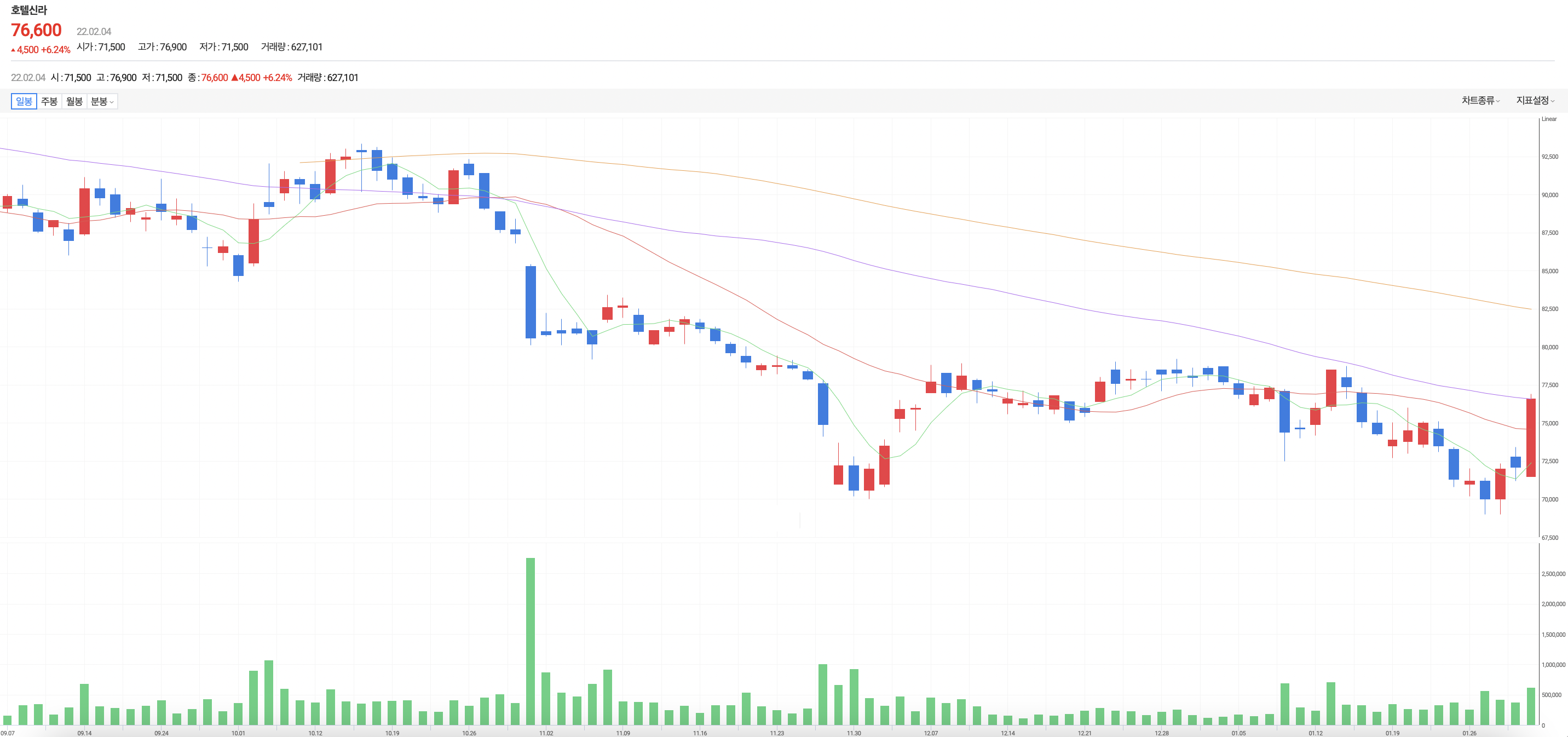 지난해 면세점, 호텔 실적이 회복되며 영업이익 흑자 전환에 성공한 호텔신라에 대해 증권가에서 목표가를 잇달아 하향 조정하고 있다. 단기적으로 상승 여력이 크지 않아 인내의 구간이 지속