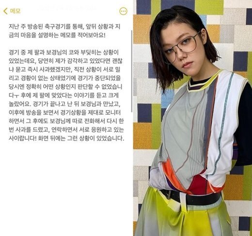 이에 황소윤은 지난 4일 인스타그램을 통해 "지난주 방송된 축구 경기를 통해, 앞뒤 상황과 지금의 마음을 설명하는 메모를 적어보아요"라는 글을 올려 해명한 것이다.