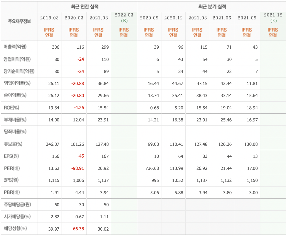⑤ 21년 3분기 순이익 : 7억