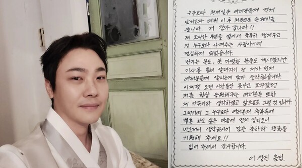이성진은 10일 자신의 인스타그램에 자필편지를 통해 결혼 계획을 알렸습니다.