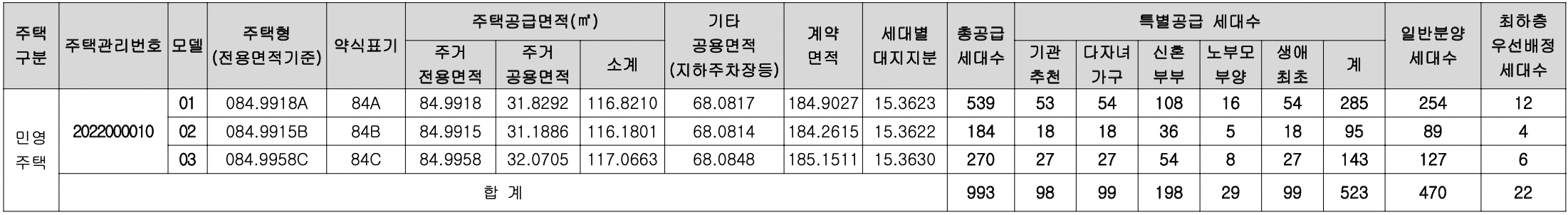 [특별공급 523세대(일반[기관추천] 98세대, 다자녀가구 99세대, 신혼부부 198세대, 노부모부양 29세대, 생애최초 99세대 포함)] 및 부대복리시설