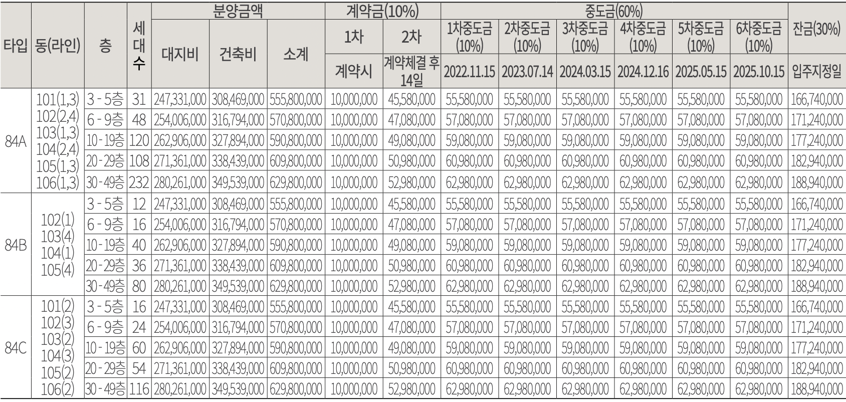 ◈ 분양가(공급금액 및 납부일정)