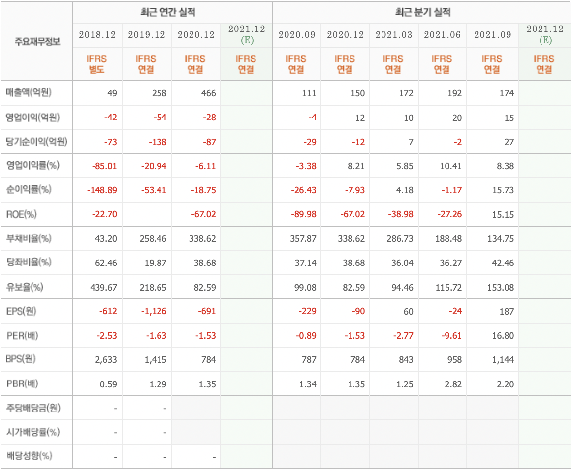 ③ 21년 3분기 매출액 : 174억