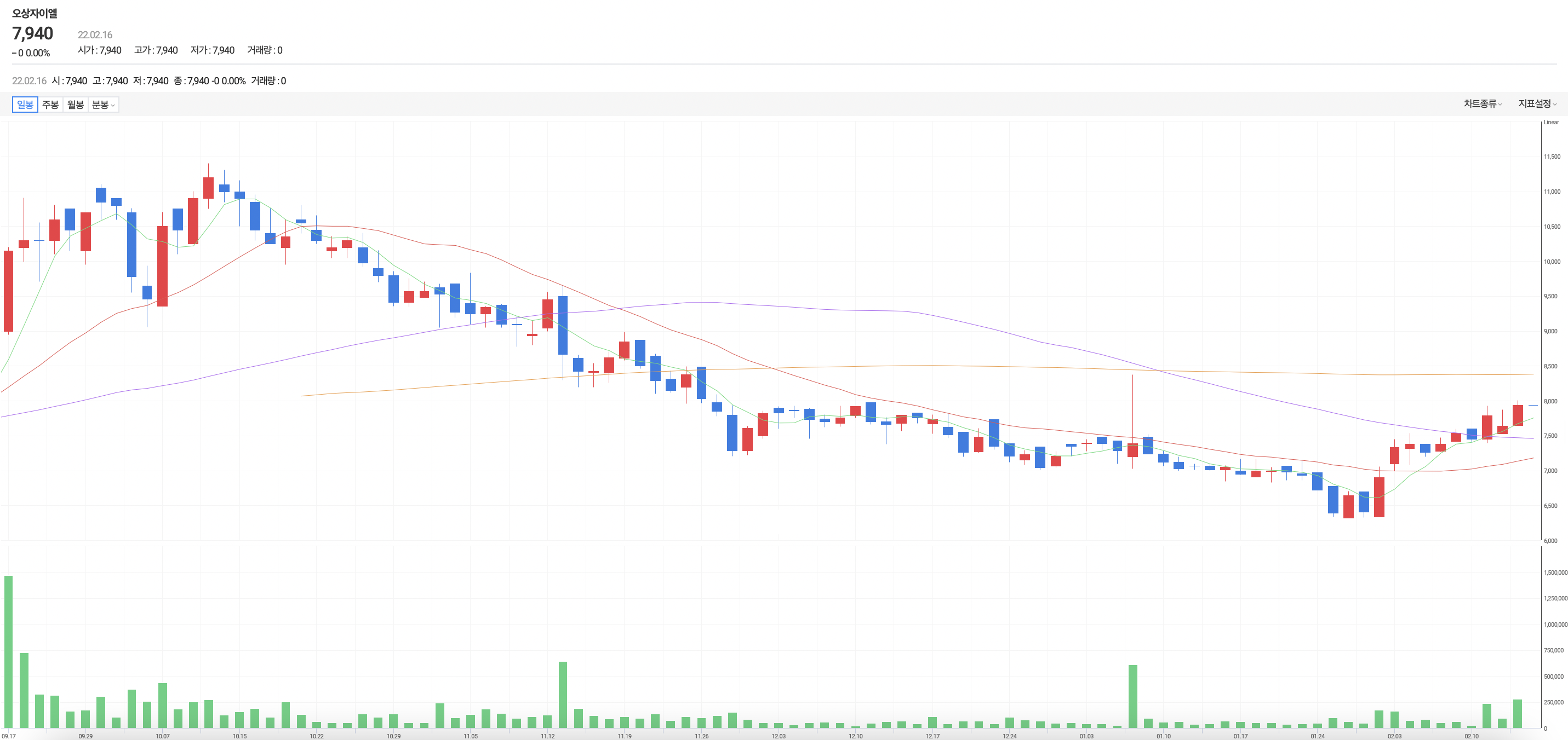 최근 몇일동안 계속 상승해 주고 있는 오상자이엘!