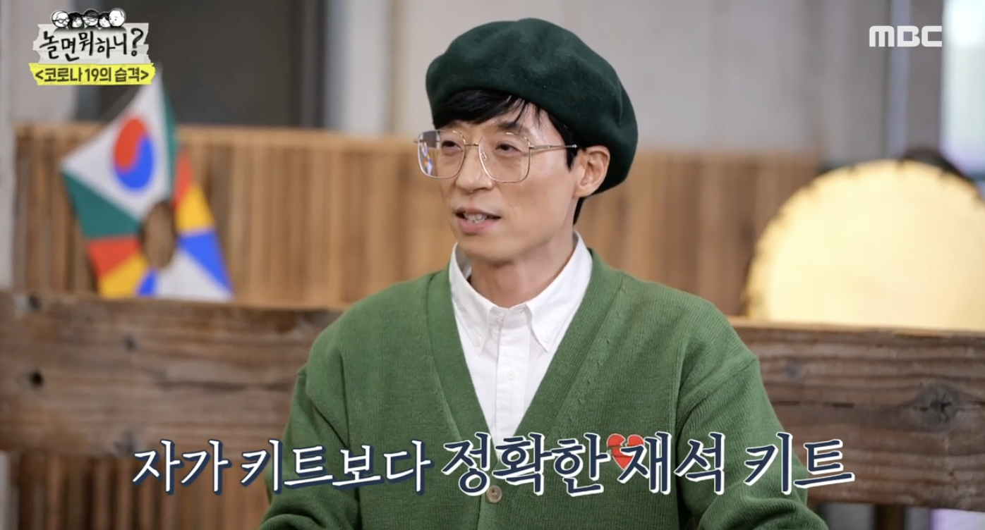 오늘 방송에서는 '놀면 뭐하니?' 멤버인 하하가 코로나 확진되기까지의 과정에 대해 이야기하면서 '재석 키트'가 떠오르고 있다.