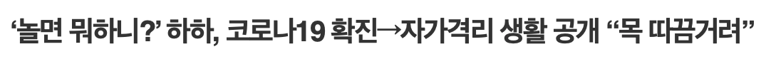 하하는 스스로 자가진단 키트 검사를 통해 음성 반응을 확인했으나, 미열이 나는 등 건강의 이상 증상을 느껴 신속하게 예정된 모든 스케줄을 취소하고 자체적으로 자가격리에 들어갔다.
