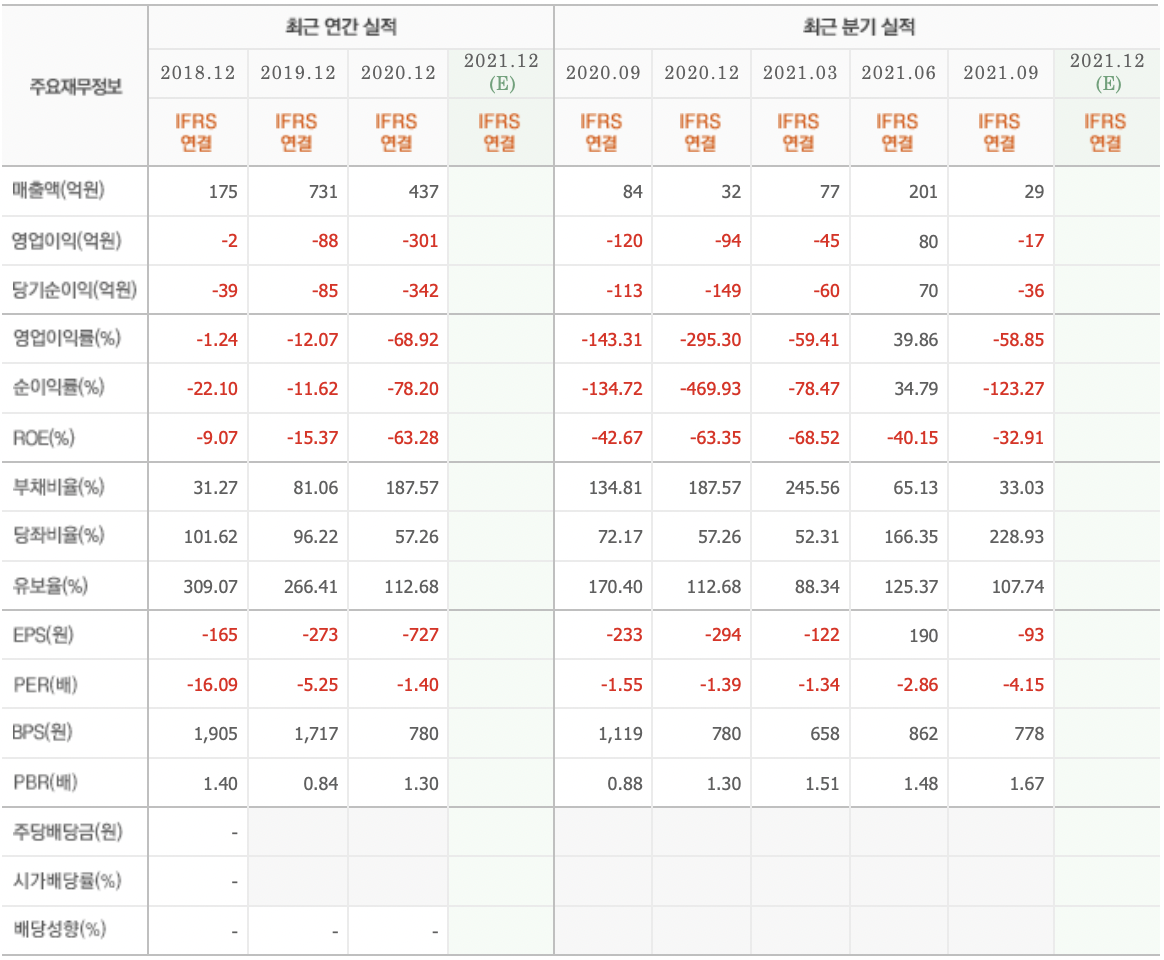 ④ 21년 3분기 영업이익 : -17억