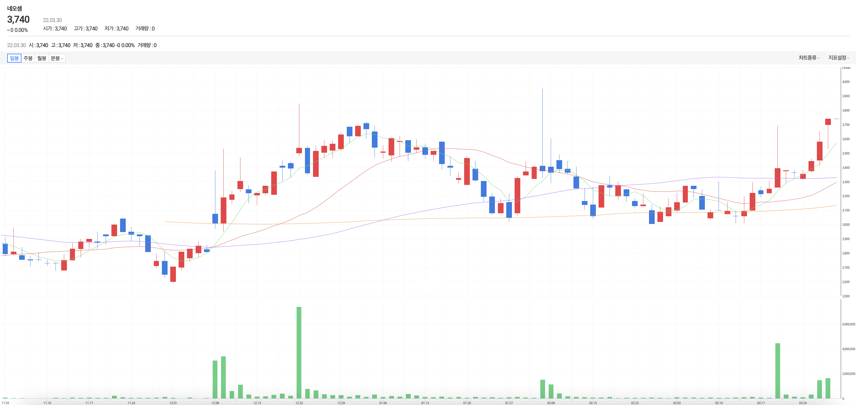 최근 계속해서 상승중인 네오셈! 어제는 시간외 매매에서 9.89% 오르면서 시간외 상한가를 기록하였다.