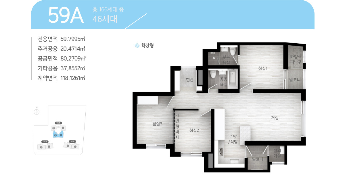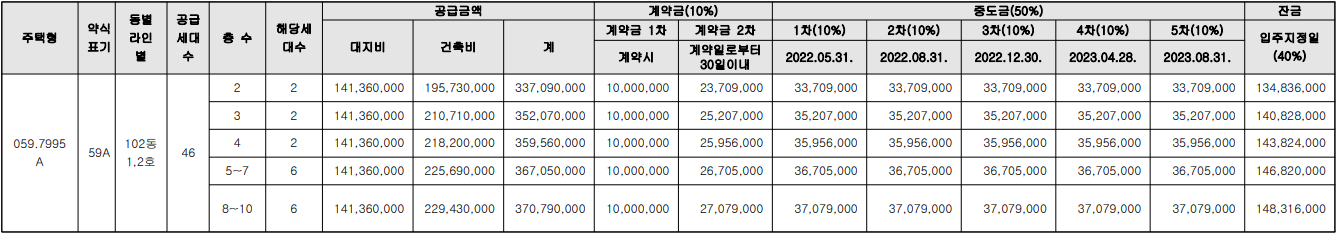 59㎡A(46세대) 3억 3709만 원 ~ 4억 287만 원