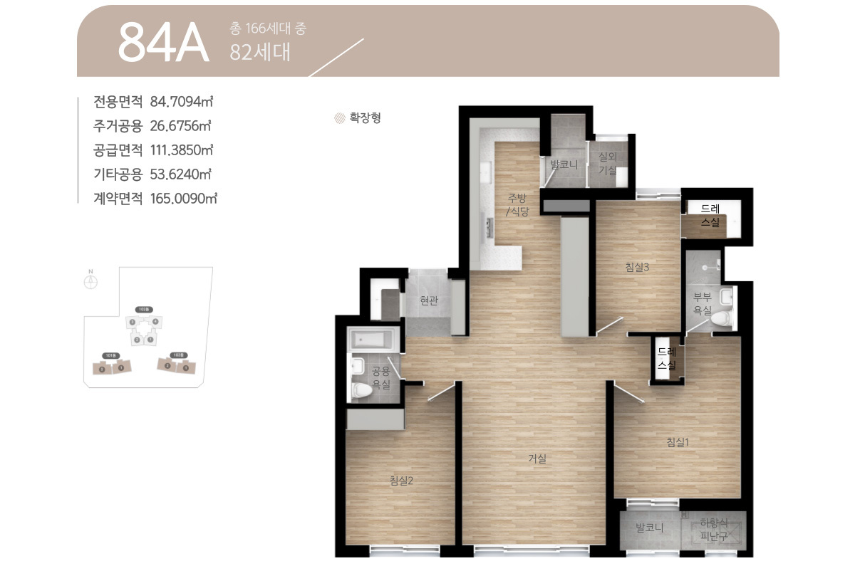 공급규모 : 지하 2층, 지상 27층 3개동 총 166세대