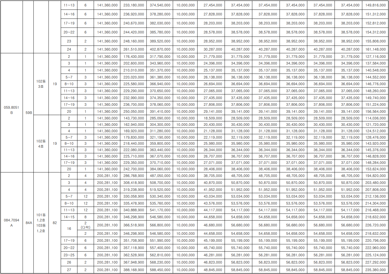 84㎡A(82세대) 4억 8705만 원 ~ 5억 8845만 원