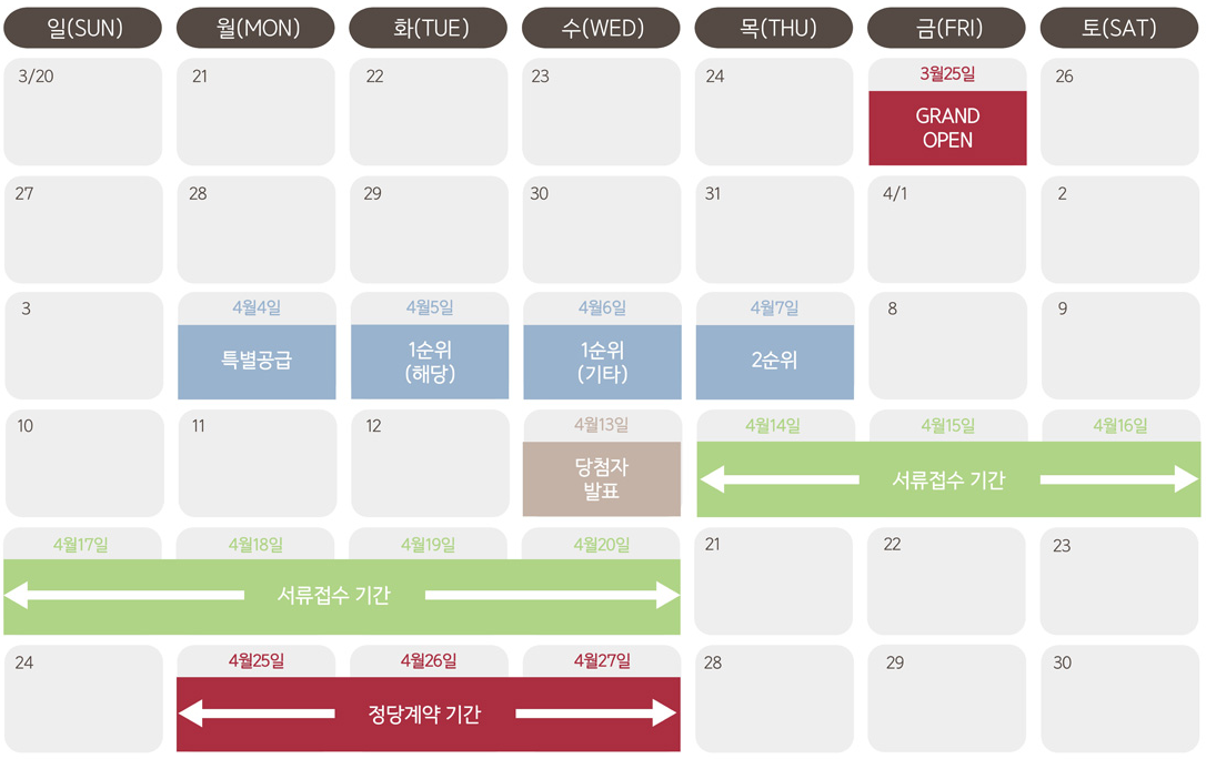 특별공급(기관추천, 다자녀, 신혼부부, 노부모부양, 생애최초) : 2022년 04월 04일 월요일