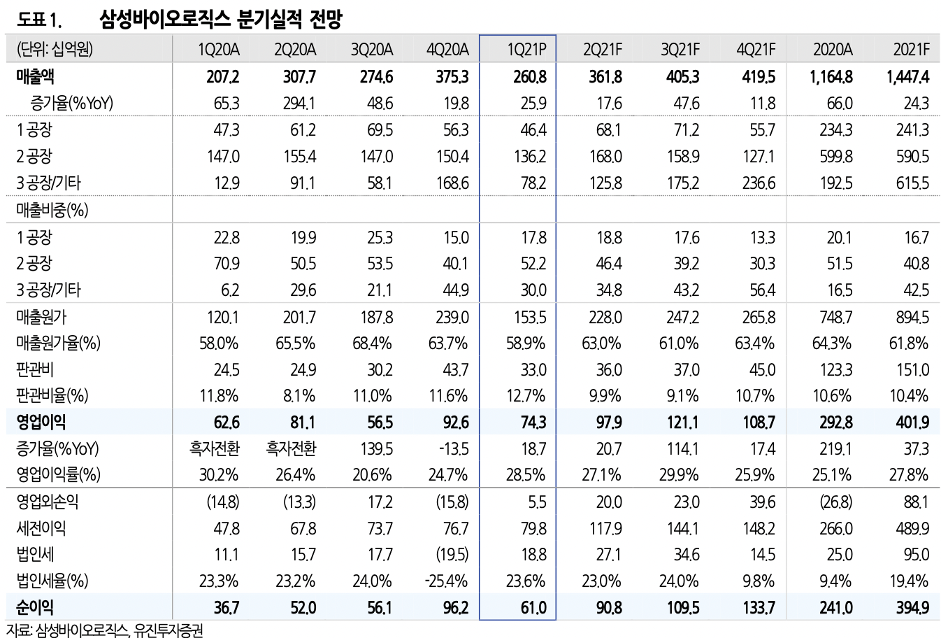 - 21년 1분기 실적 매출액 2,608억 원, 영업이익 743억 원으로 모두 시장 컨센서스 하회하는 실적