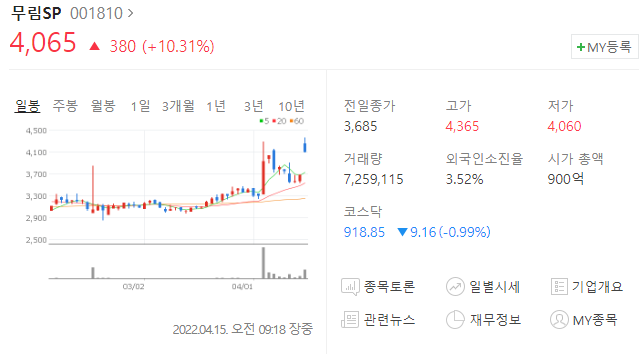 무림SP의 주가가 장 초반부터 상승(급등) 출발하고 있다. 무슨 이유로?