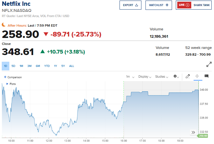 이 같은 하락은 넷플릭스(NFLX)가 장 마감 후 2022년 1분기 실적 발표를 하면서이다.