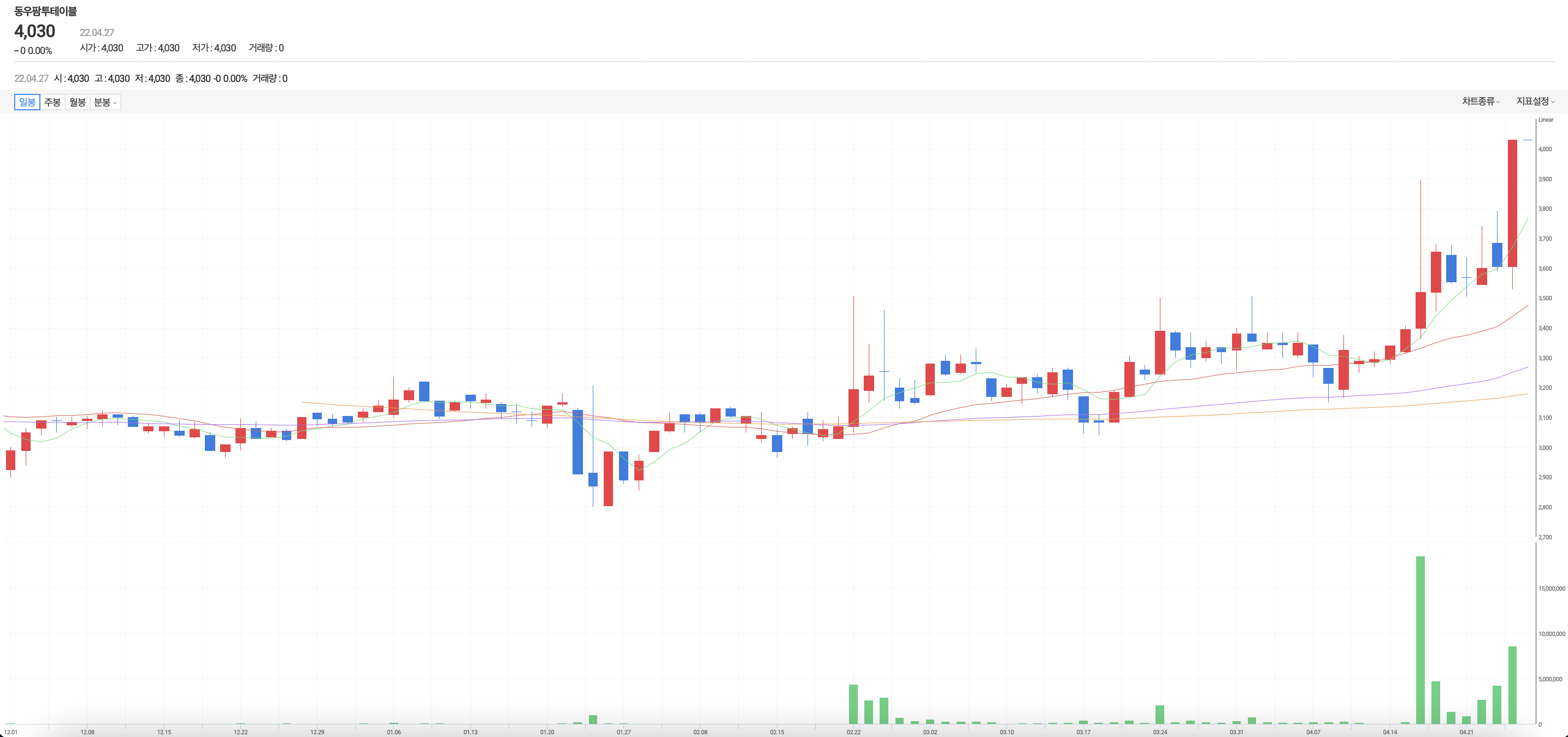 장 중부터 심상치 않던 동우팜투테이블의 주가..