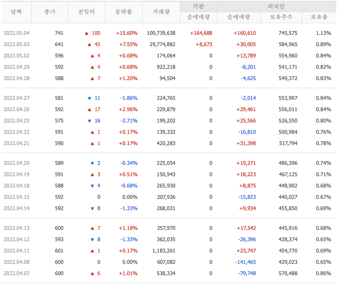 4일 시간외 매매 동안 종가보다 9.99% 오른 시간외 상한가를 기록하였다.