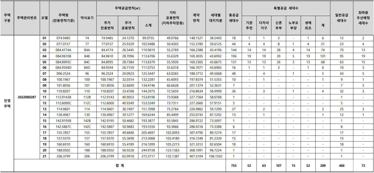 공급규모 : 아파트 지하 7층, 지상 15층, 17개동 총 755세대