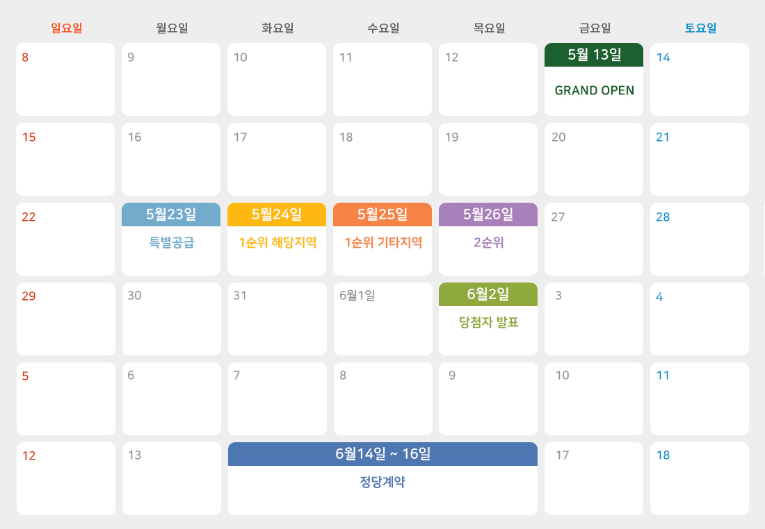 특별공급(기관추천, 다자녀, 신혼부부, 노부모부양, 생애최초) : 2022년 05월 23일 월요일