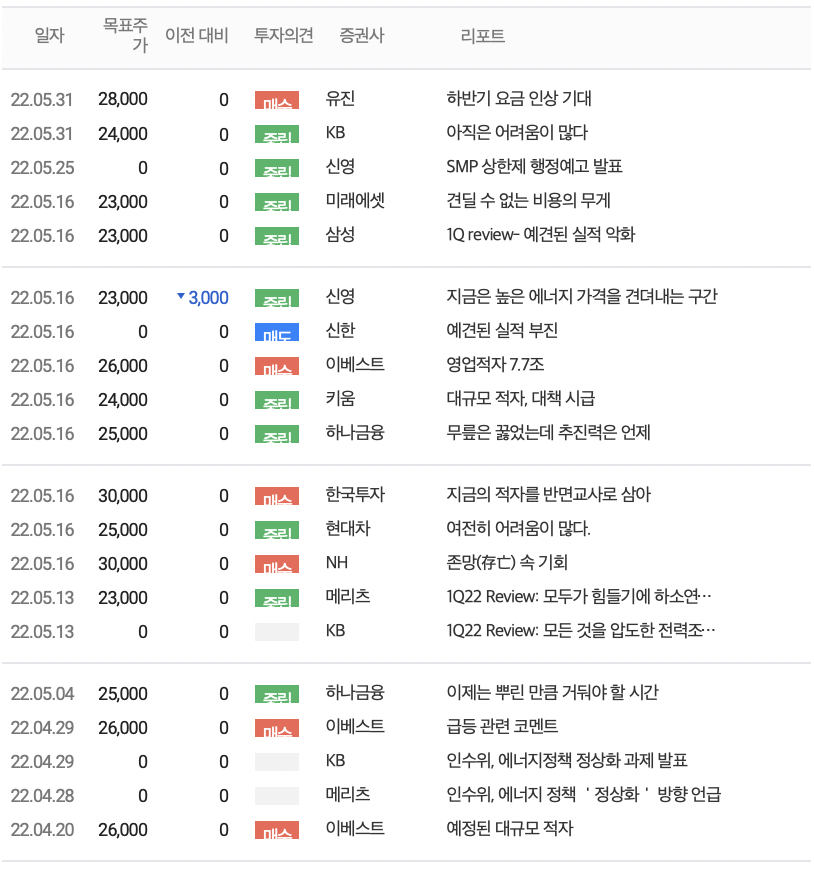한국전력 목표주가 전망(역대급 적자, 신용등급 하향)