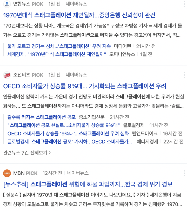 최근 뉴스에 도배되고 있는 이야기 스태그플레이션..
