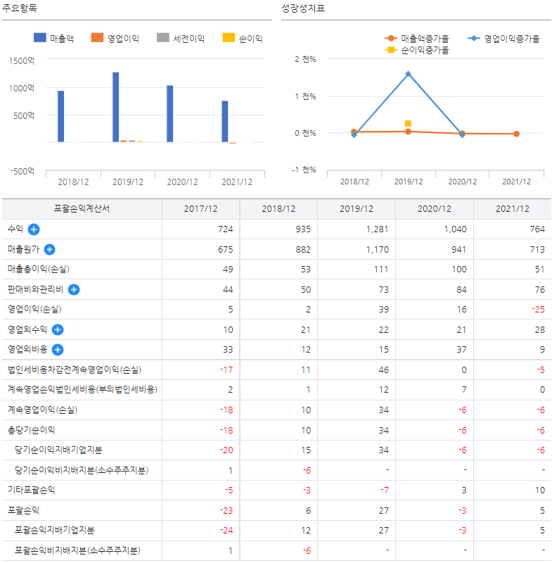 ③ 21년 매출액 : 764억